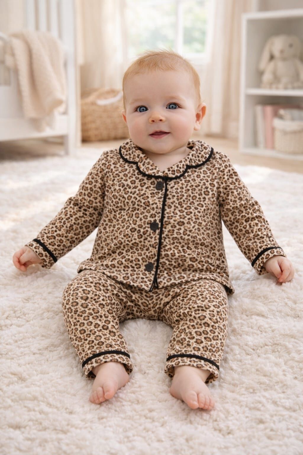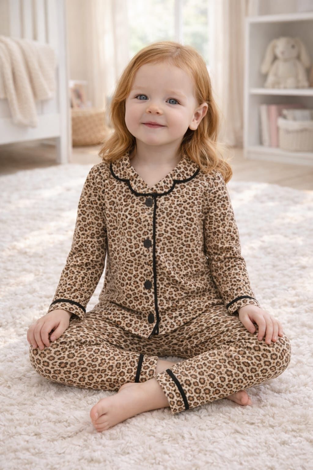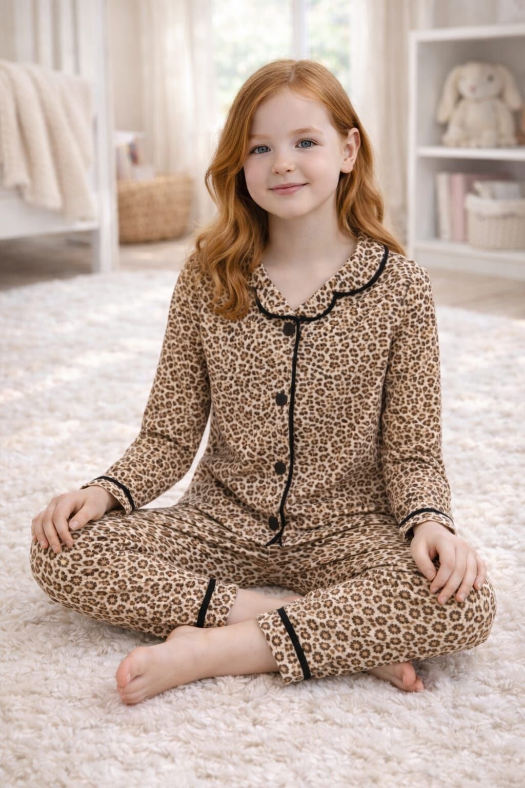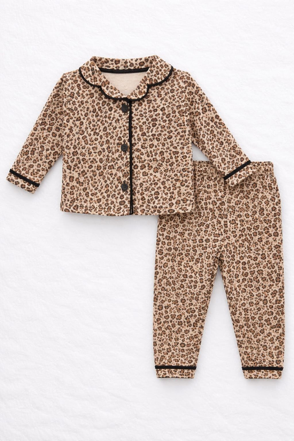 Anne Çocuk Kombin Leopar Desenli Tam Kalıp %100 Pamuk Kuruveze Yakalı Anne Çocuk Pijama Takımı