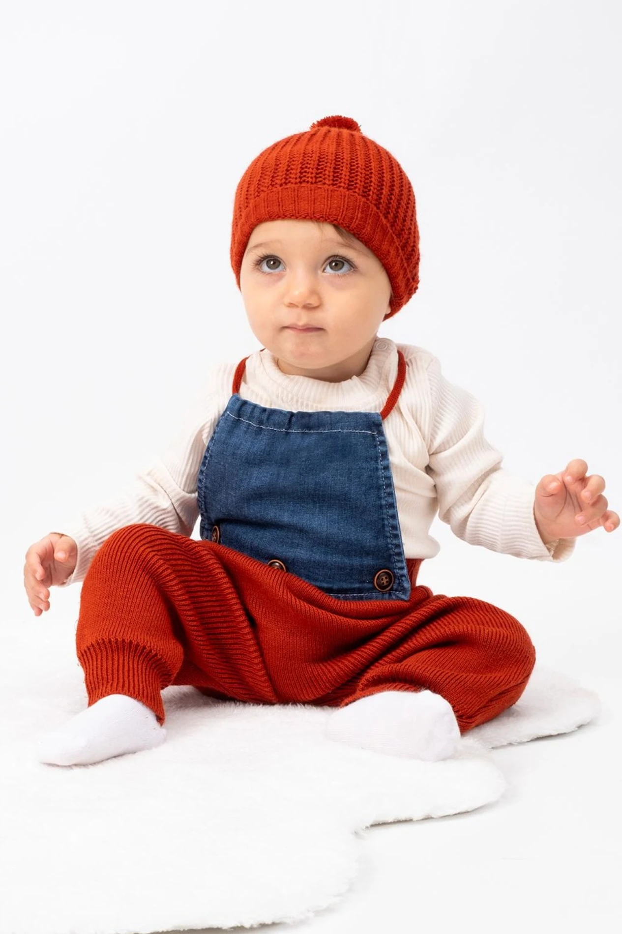 Bere Kaşkorse Badili ve Triko Pantolon Kot Detaylı Salopet Kışlık Kız Bebek-Çocuk Takım