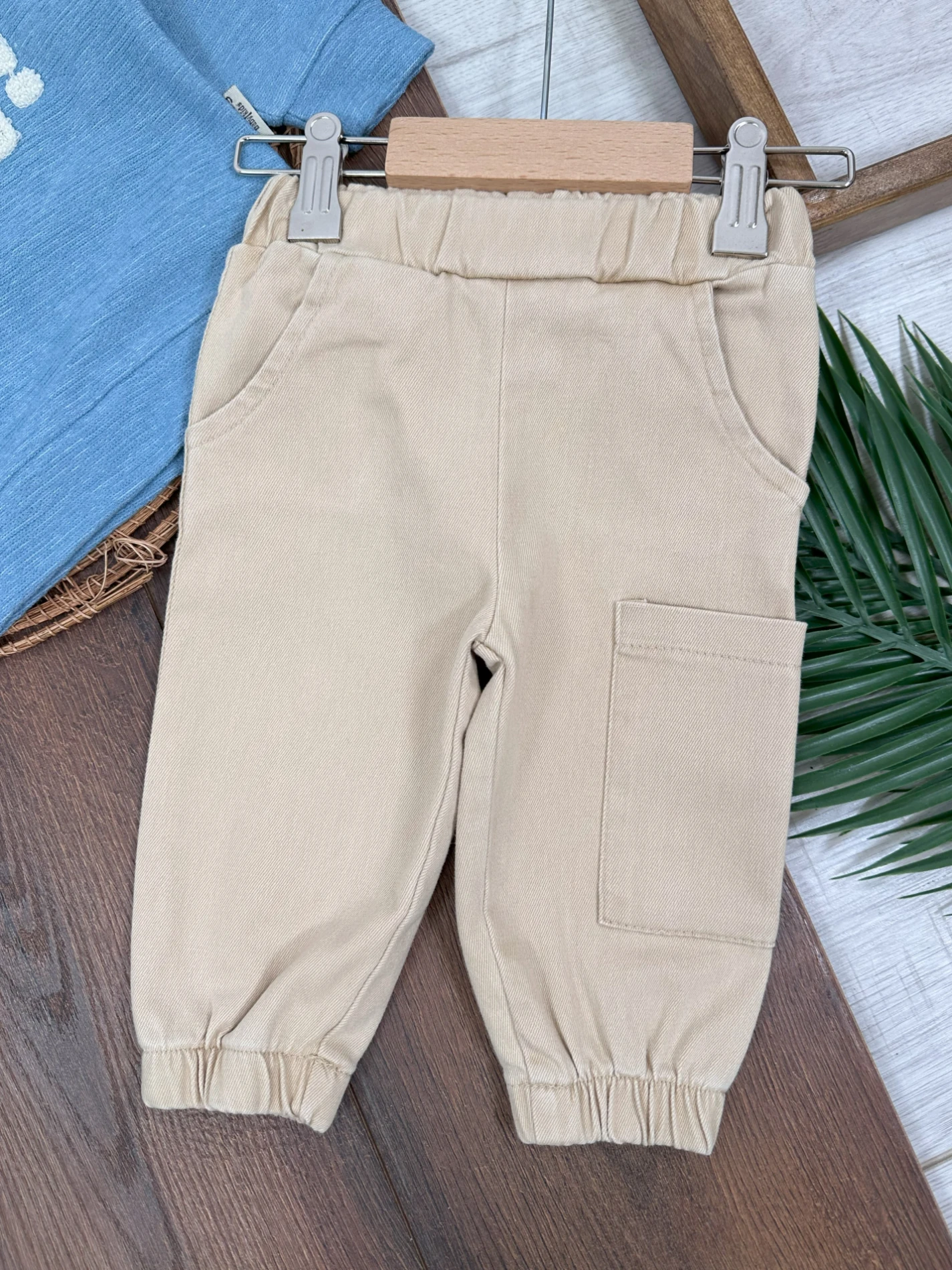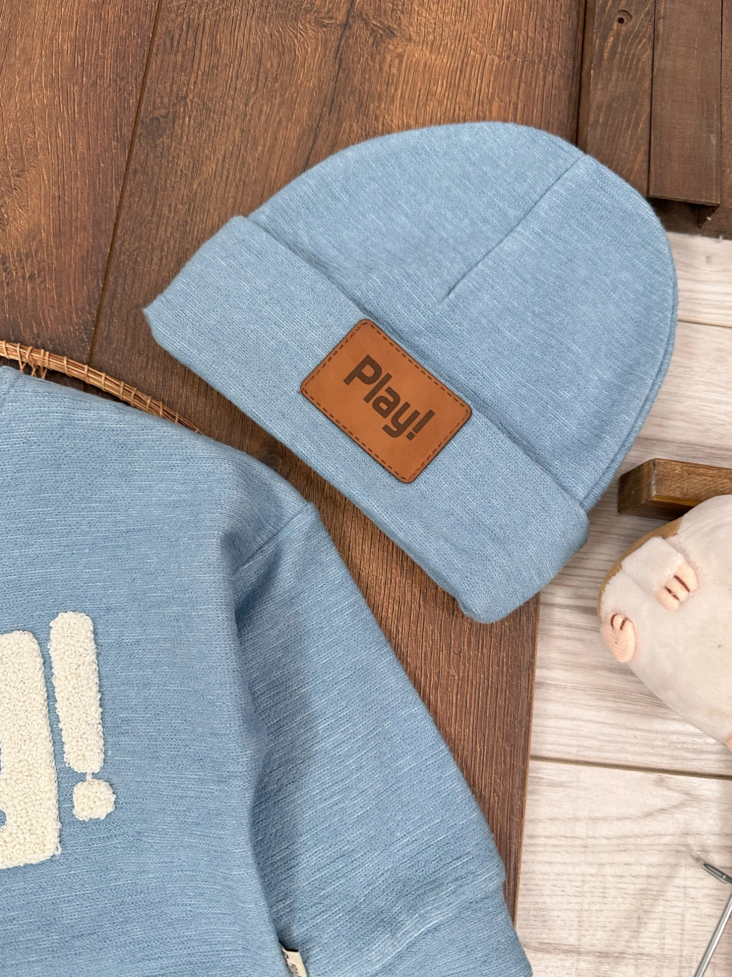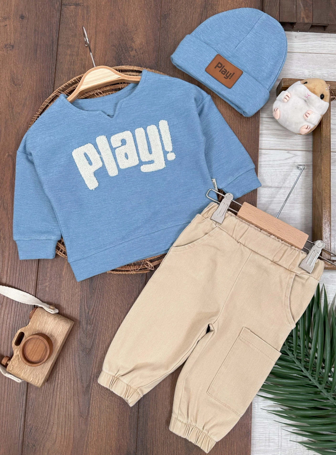 Bereli Likralı Kanvars Play NakışlıPantolon 3lü Erkek Bebek Takım