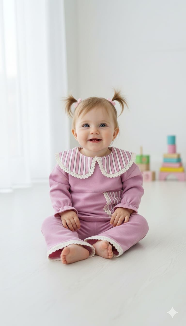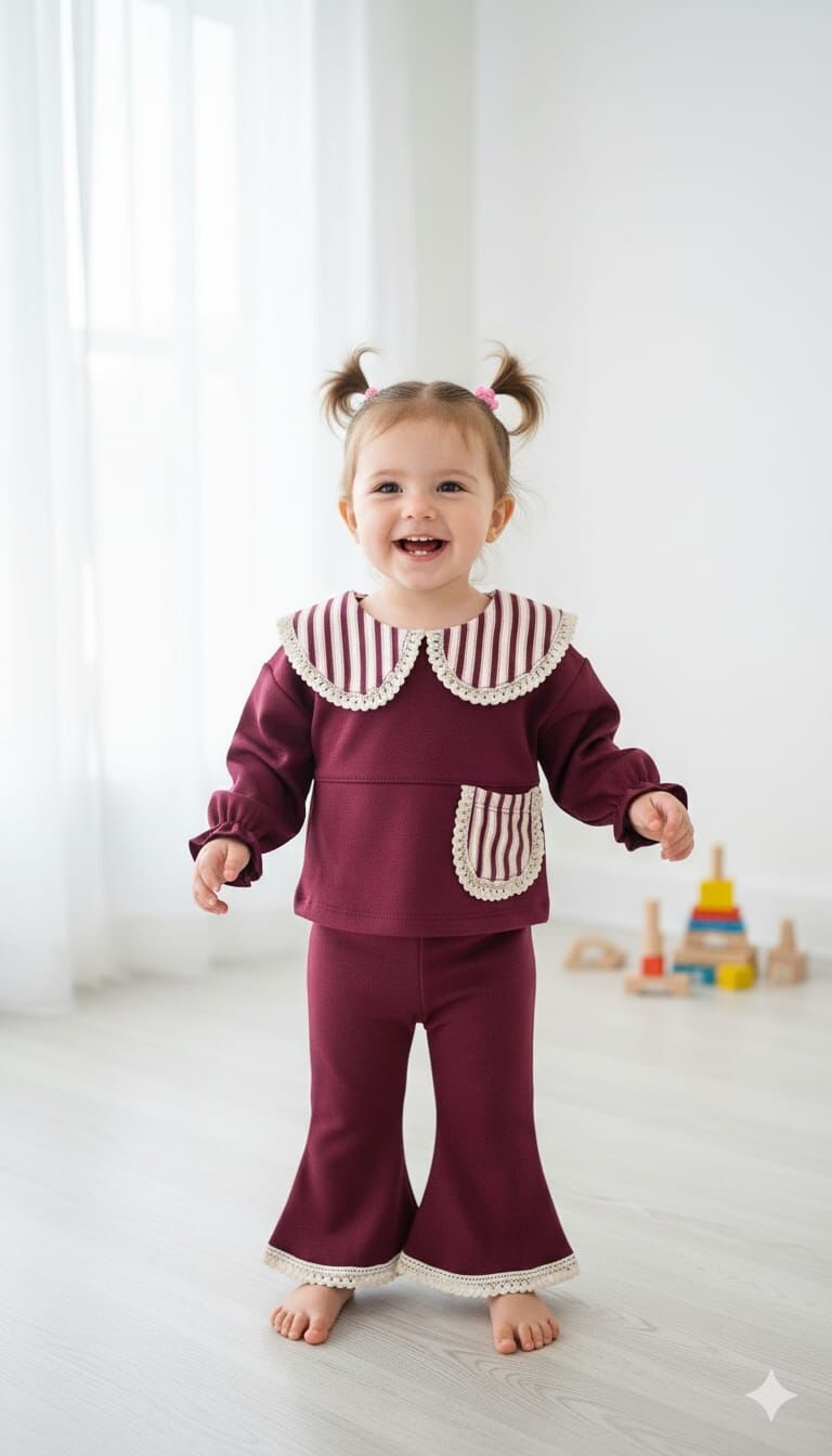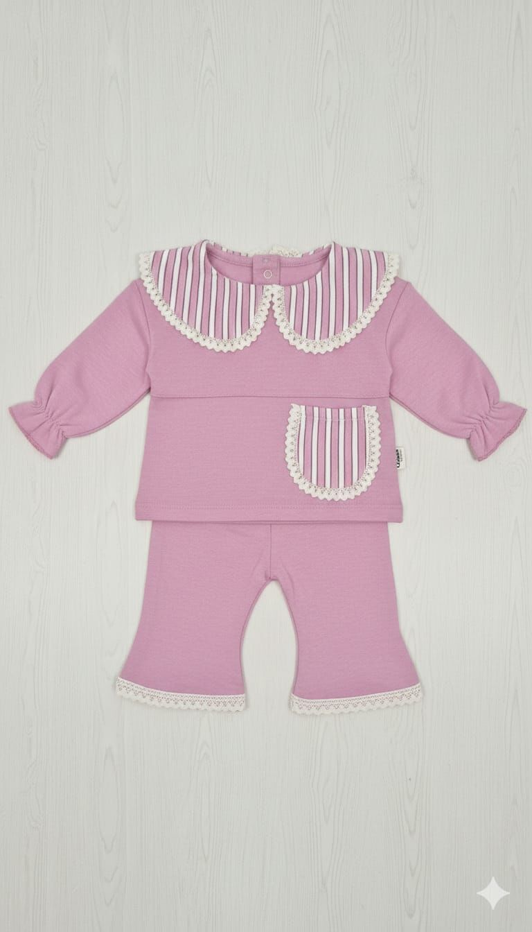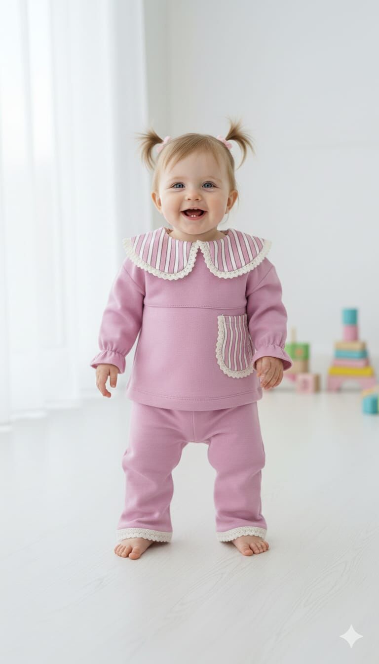 Bebeklerin rahatlığı ön planda tutularak tasarlanan bu takım, %100 pamuk kumaşı sayesinde yumuşak ve nefes alabilir. İspanyol paça kesimi ile modern bir görünüm sunar. Cep detayları, şıklık ve fonksiyonelliği bir arada buluşturur. Günlük kullanıma idealdir.