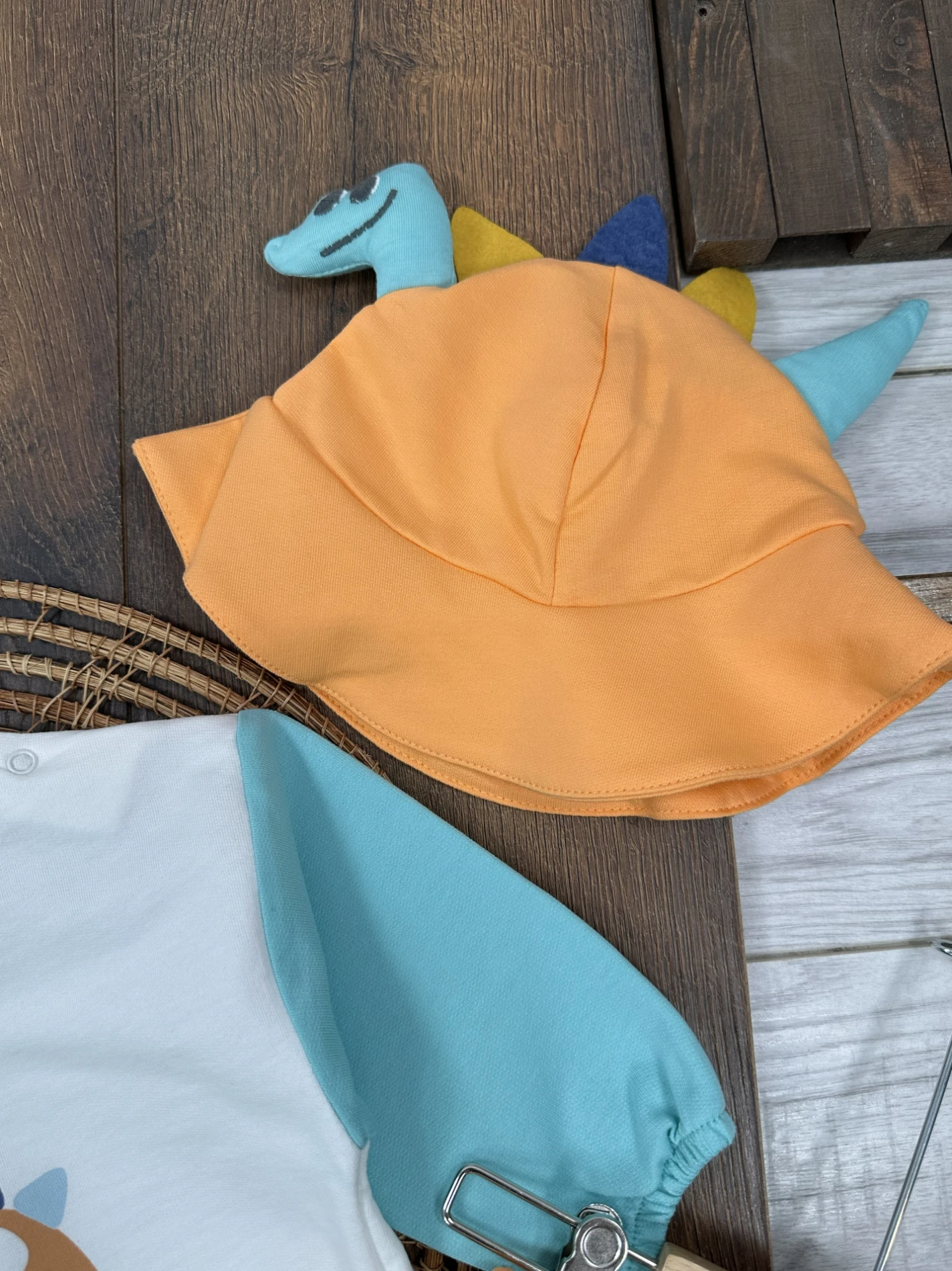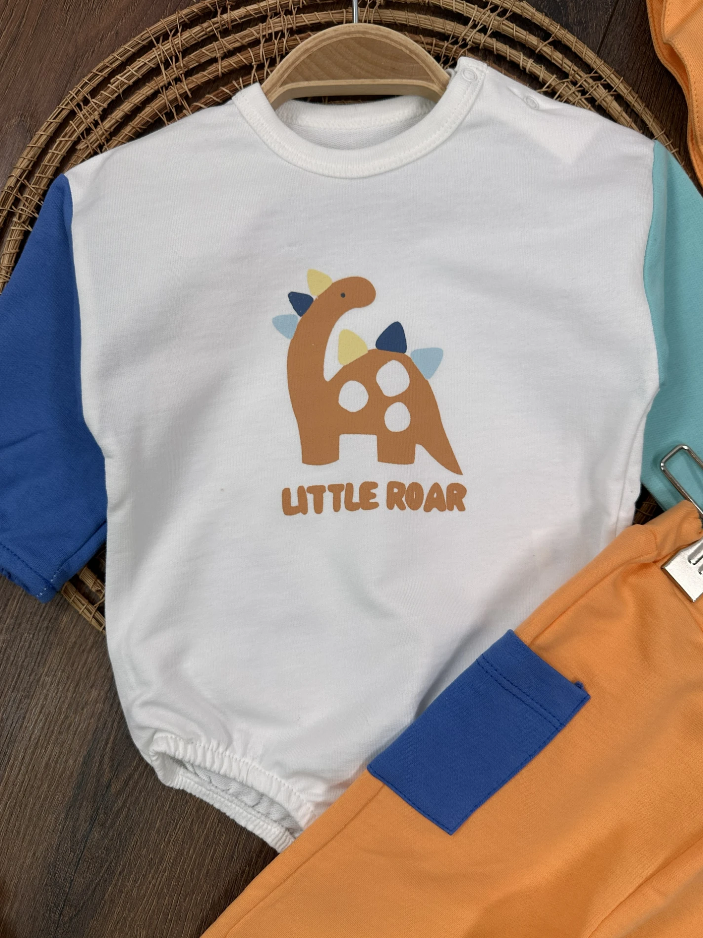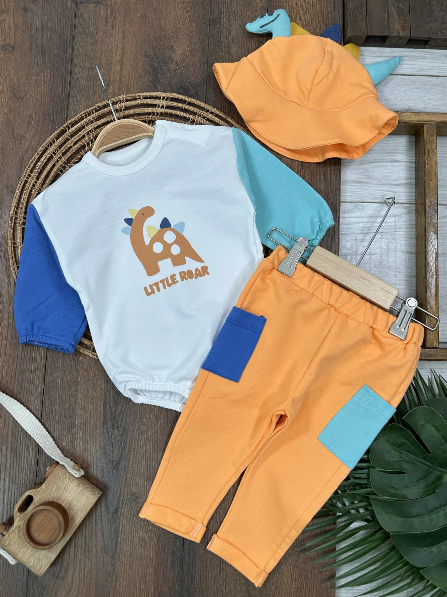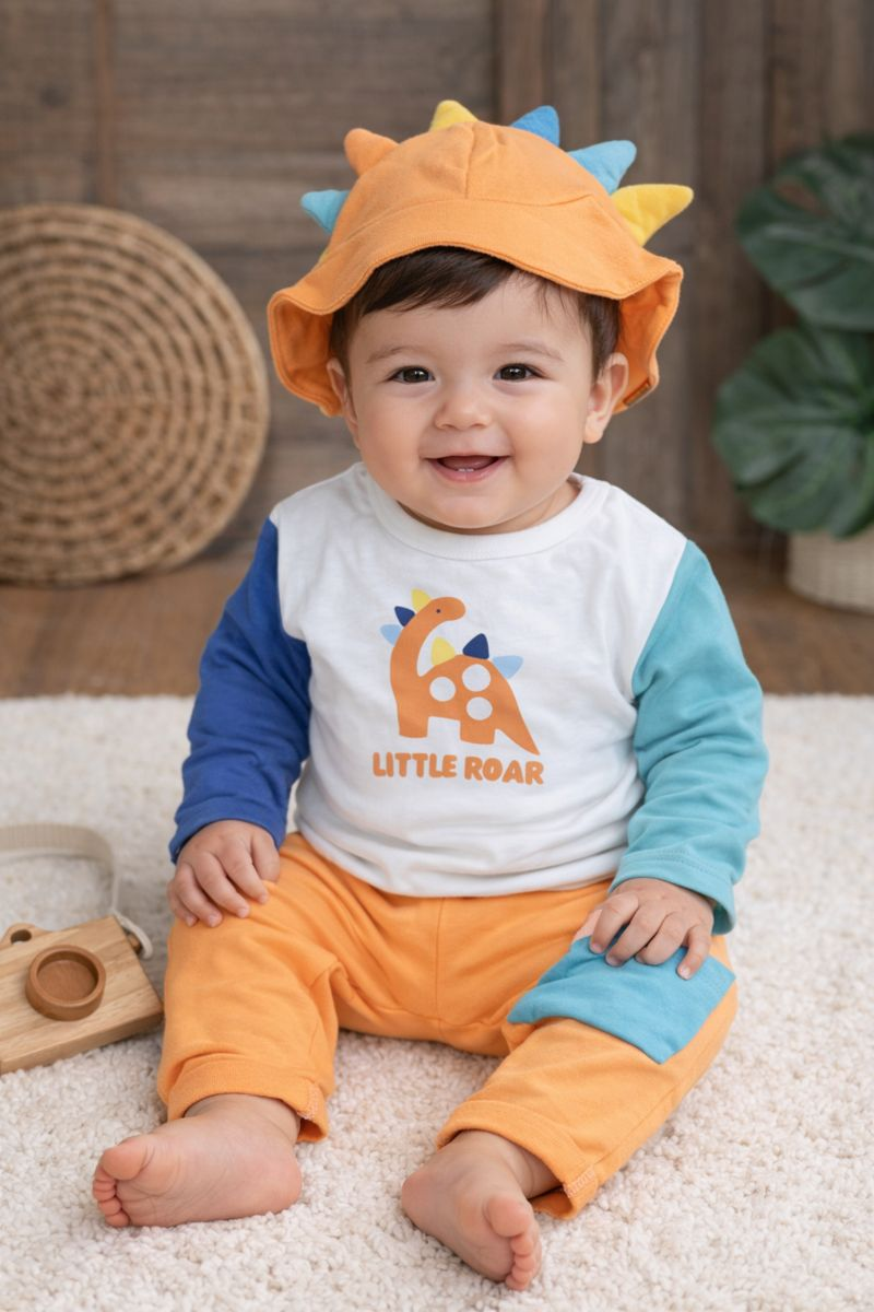 Dinozor Figürlü Renkli Kol Şapka Alttan Çıtçıtlı Mevsimlik Erkek Bebek Takım