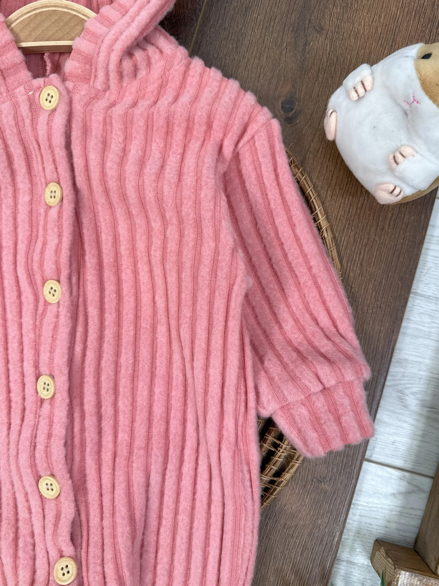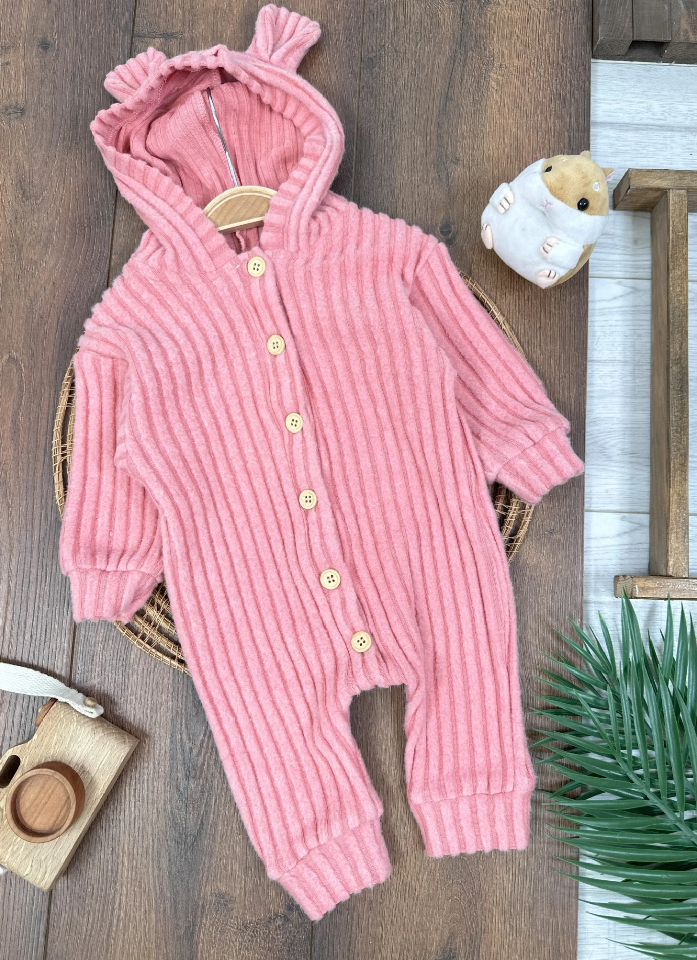 Düğmeli Kapüşonlu Kışlık Kız Bebek Tulum
