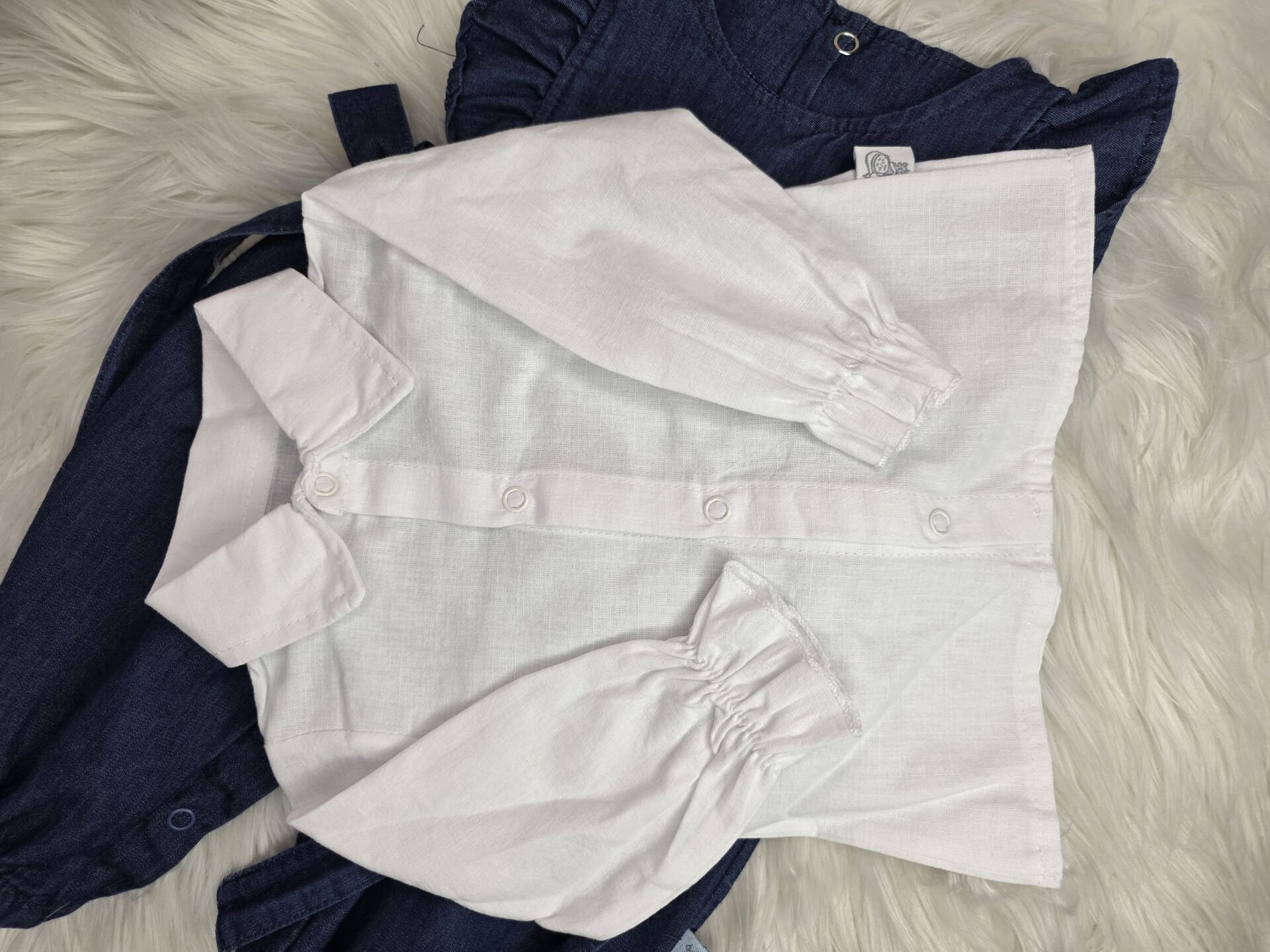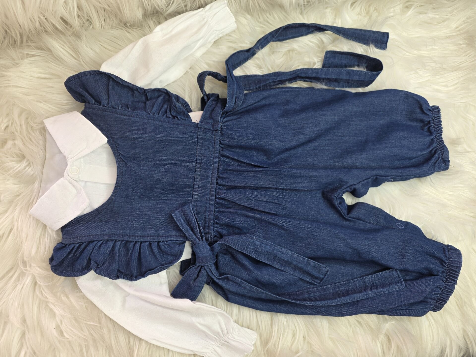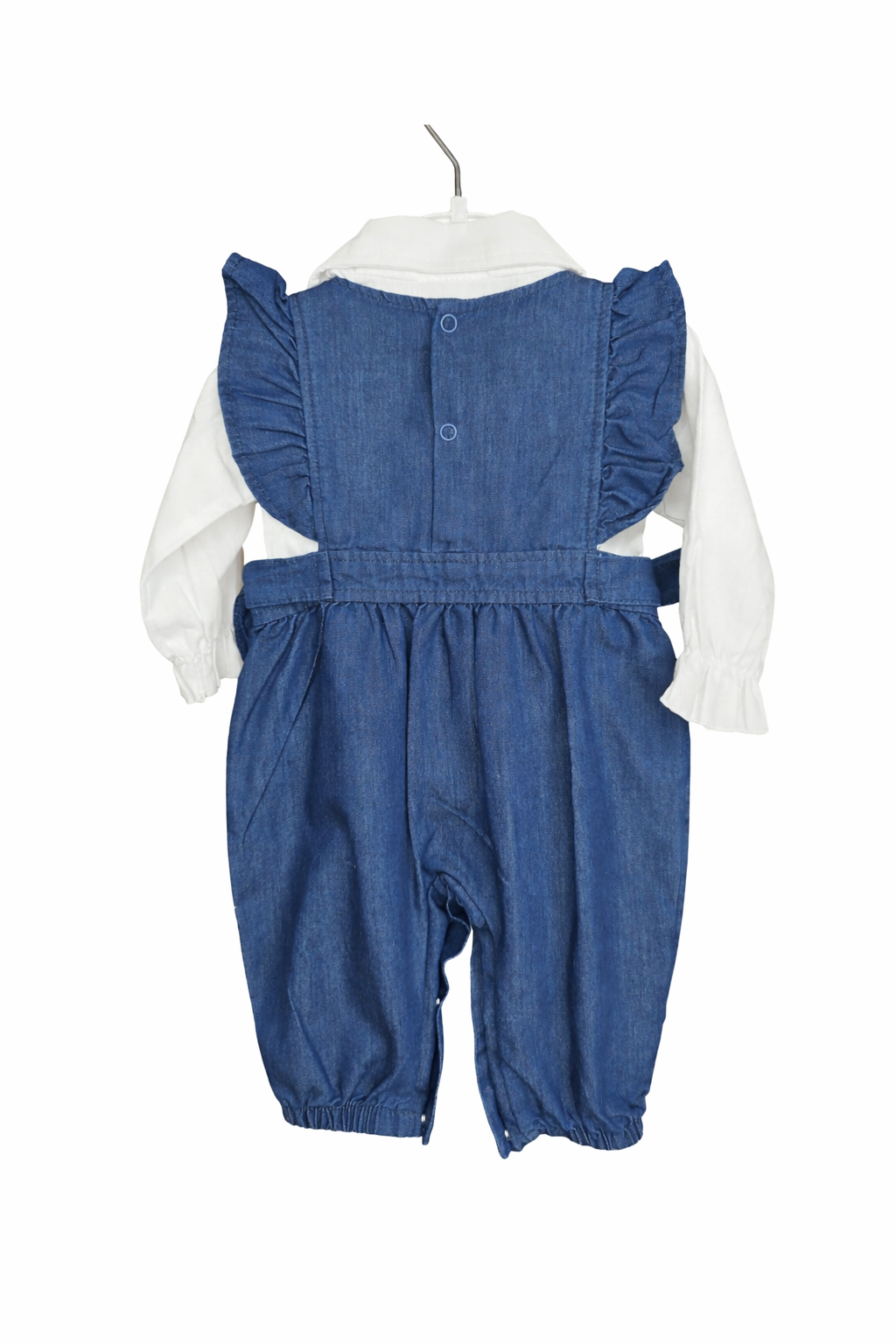 Müslin Gömlekli (Ayrı) Düğme Detaylı Kız Bebek Kot Tulum