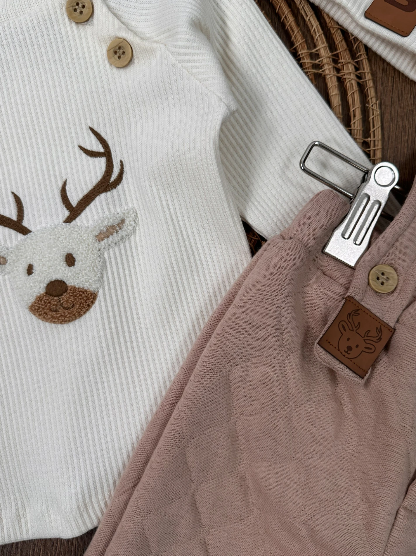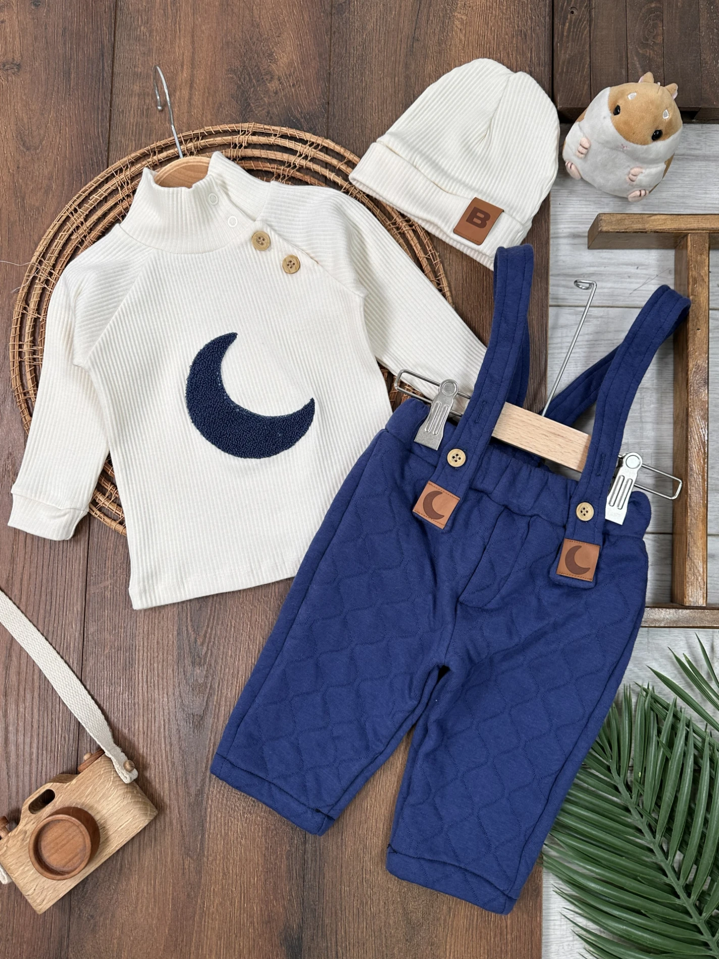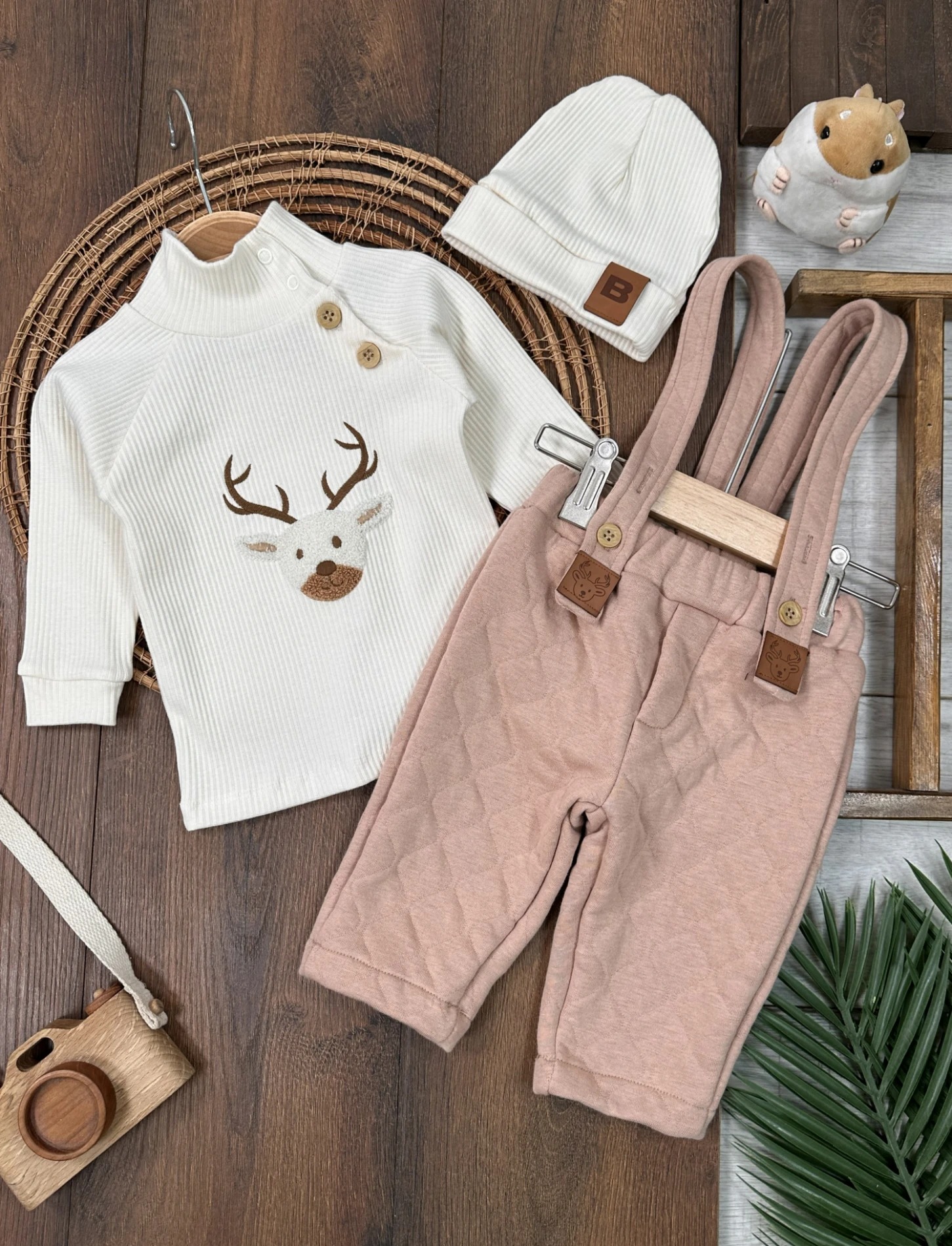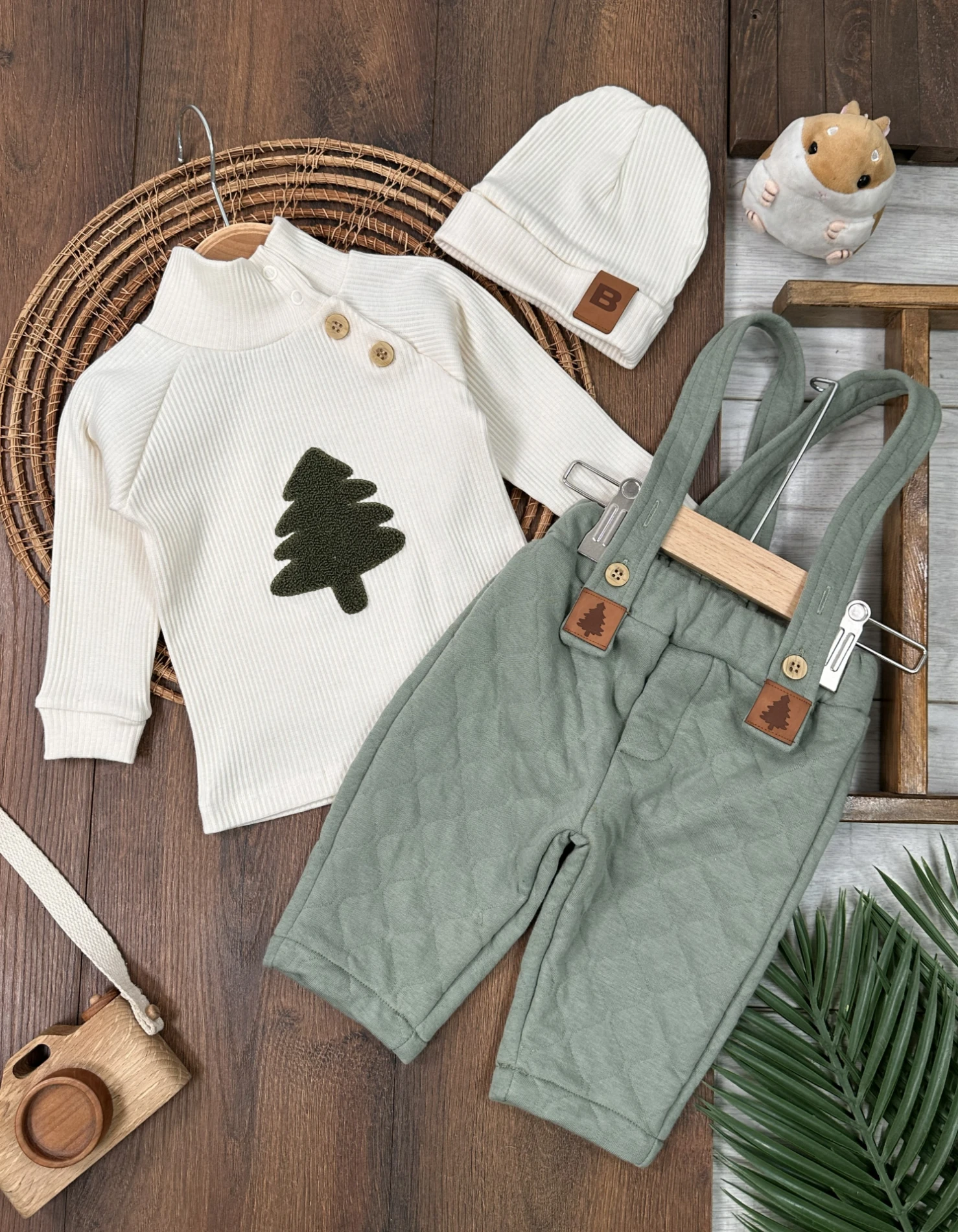 Salopet Çam Nakışlı Kapitone Bereli Balıkçı Yaka Badi Kışlık 3lü Erkek Bebek Takım