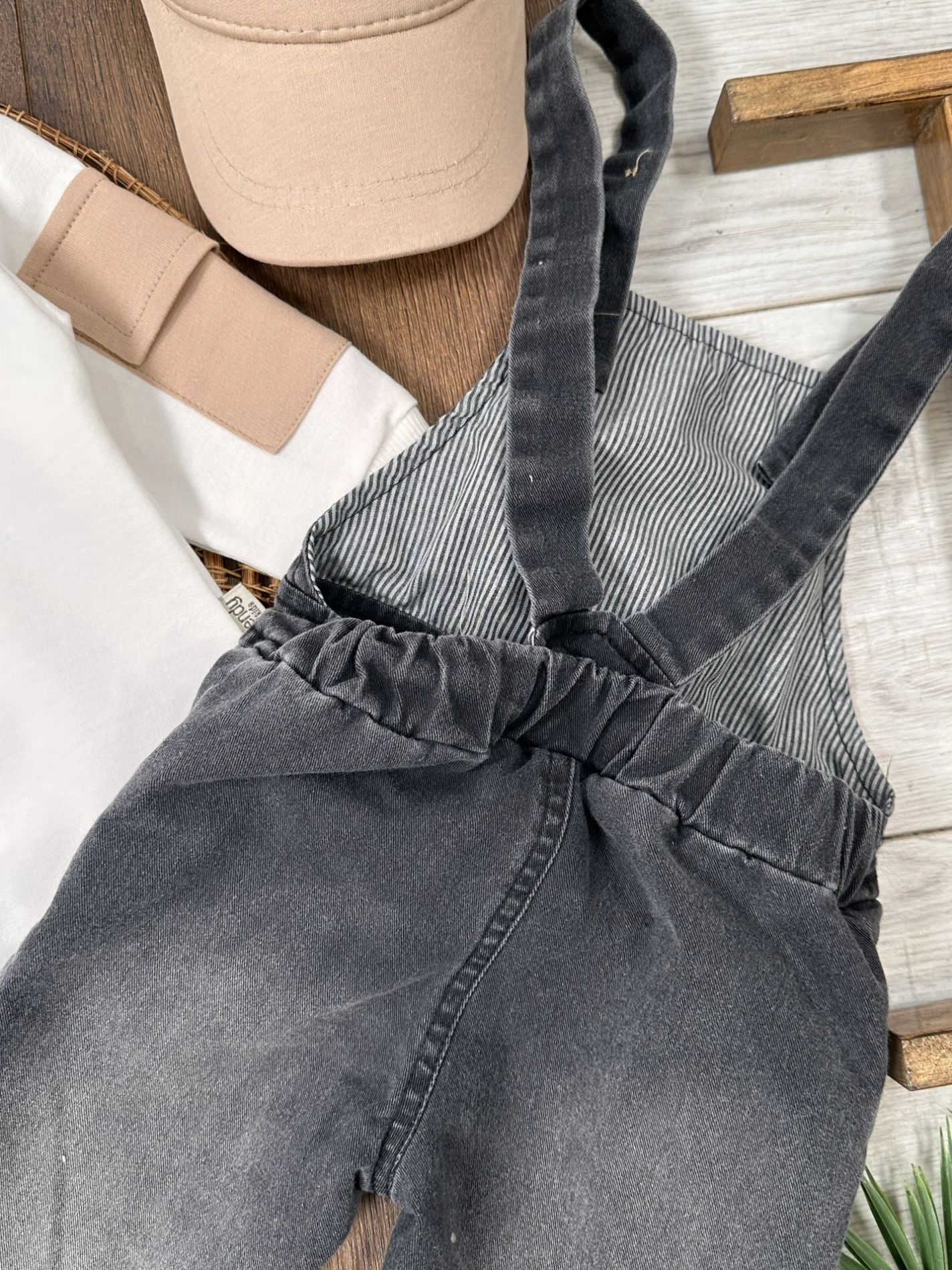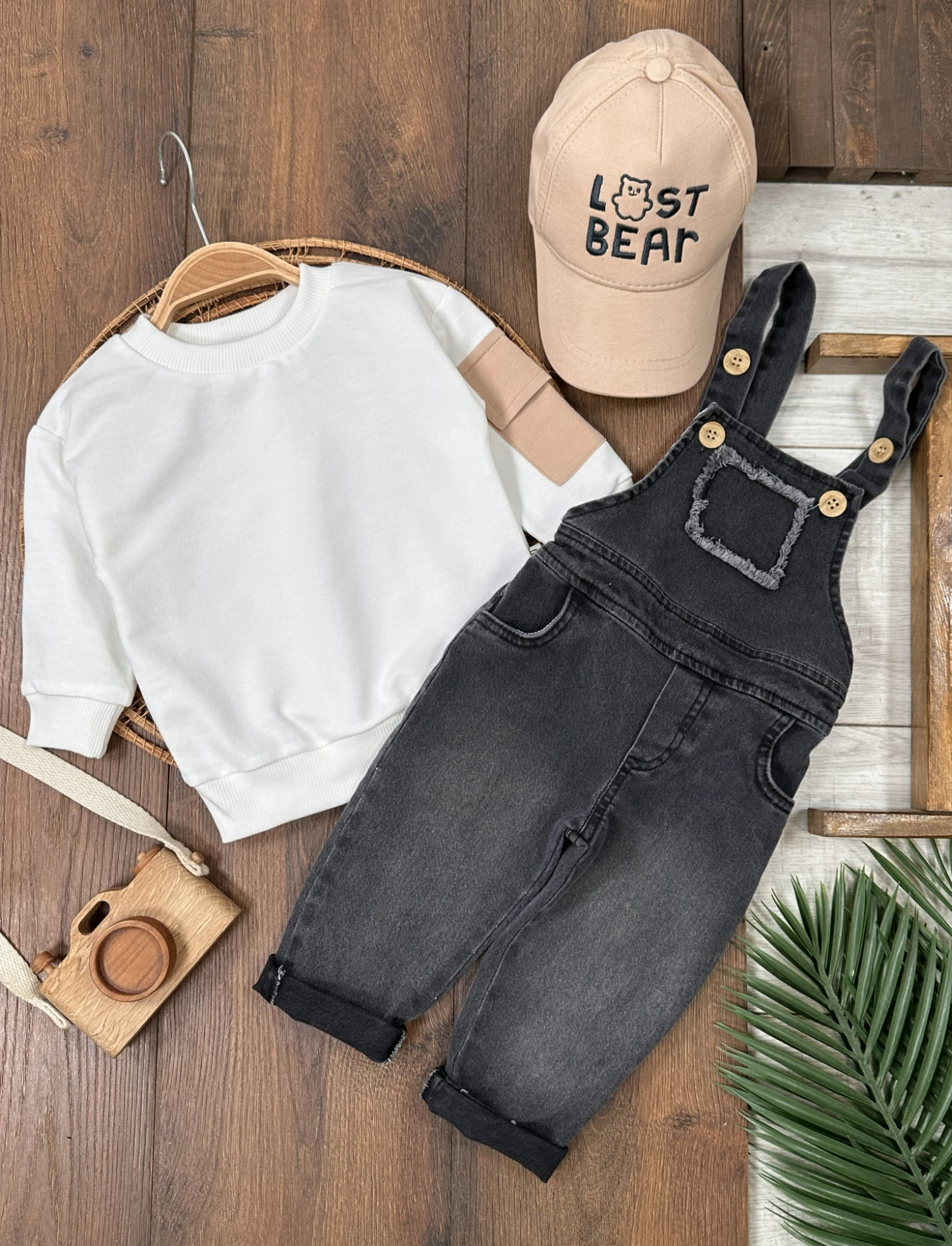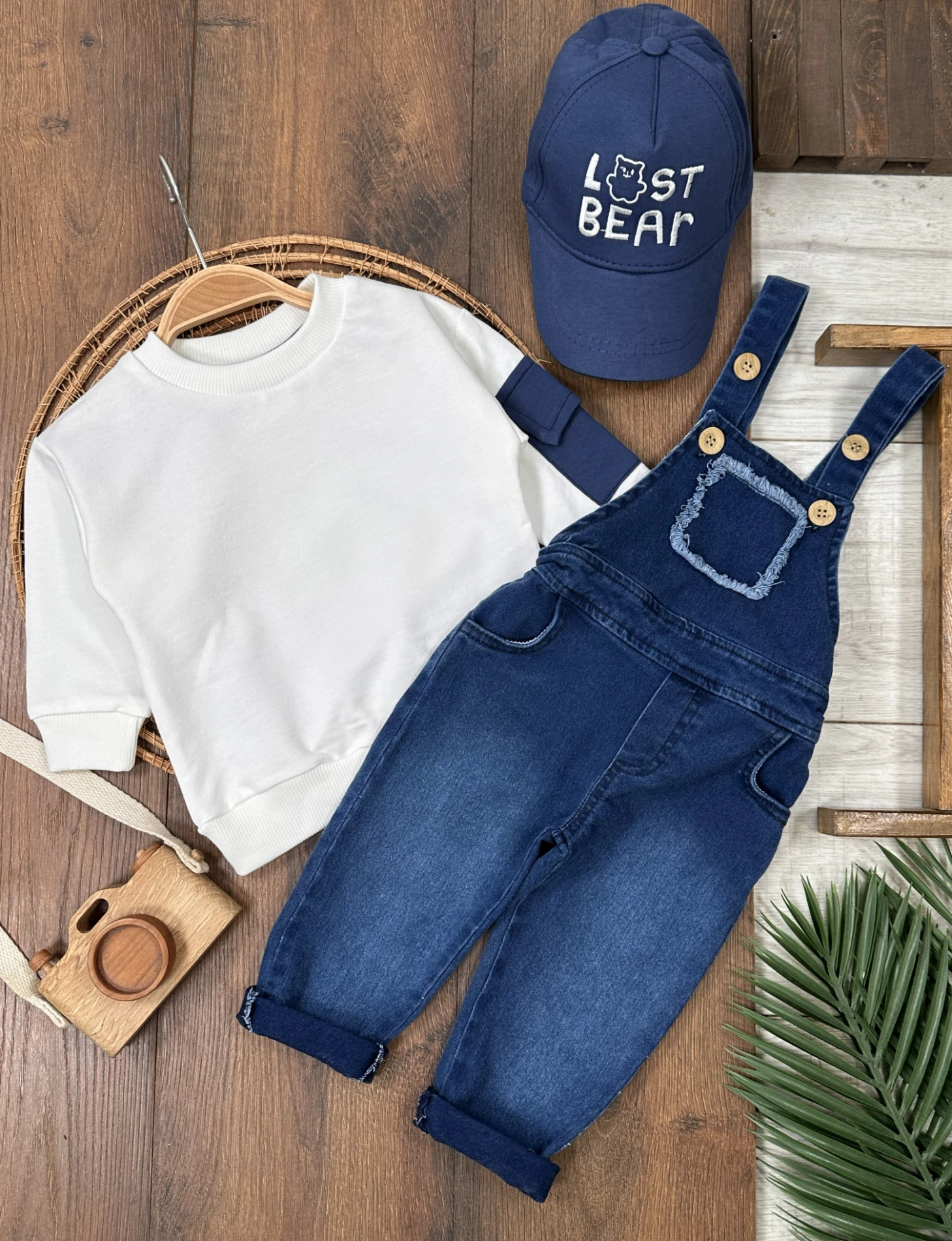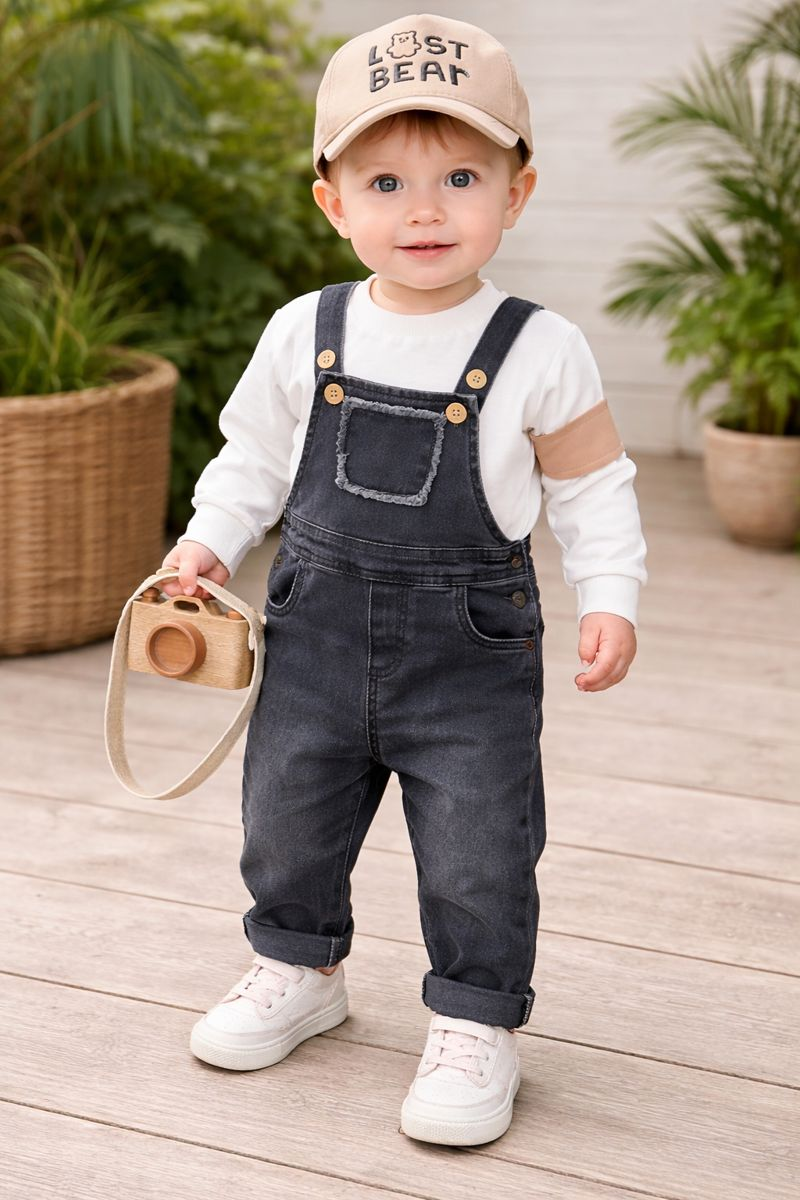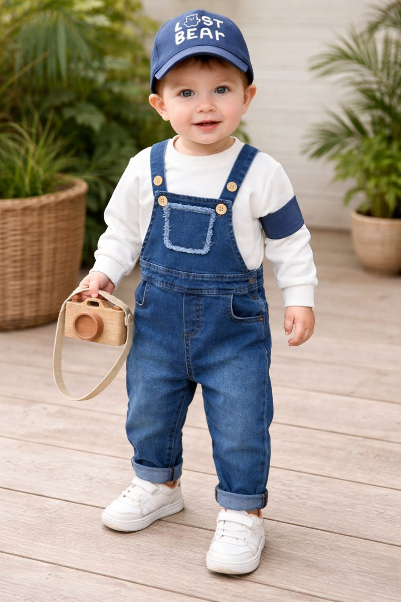Şapkalı Cep Detaylı SalopetLikralı Kot Salopet Erkek Bebek Takım