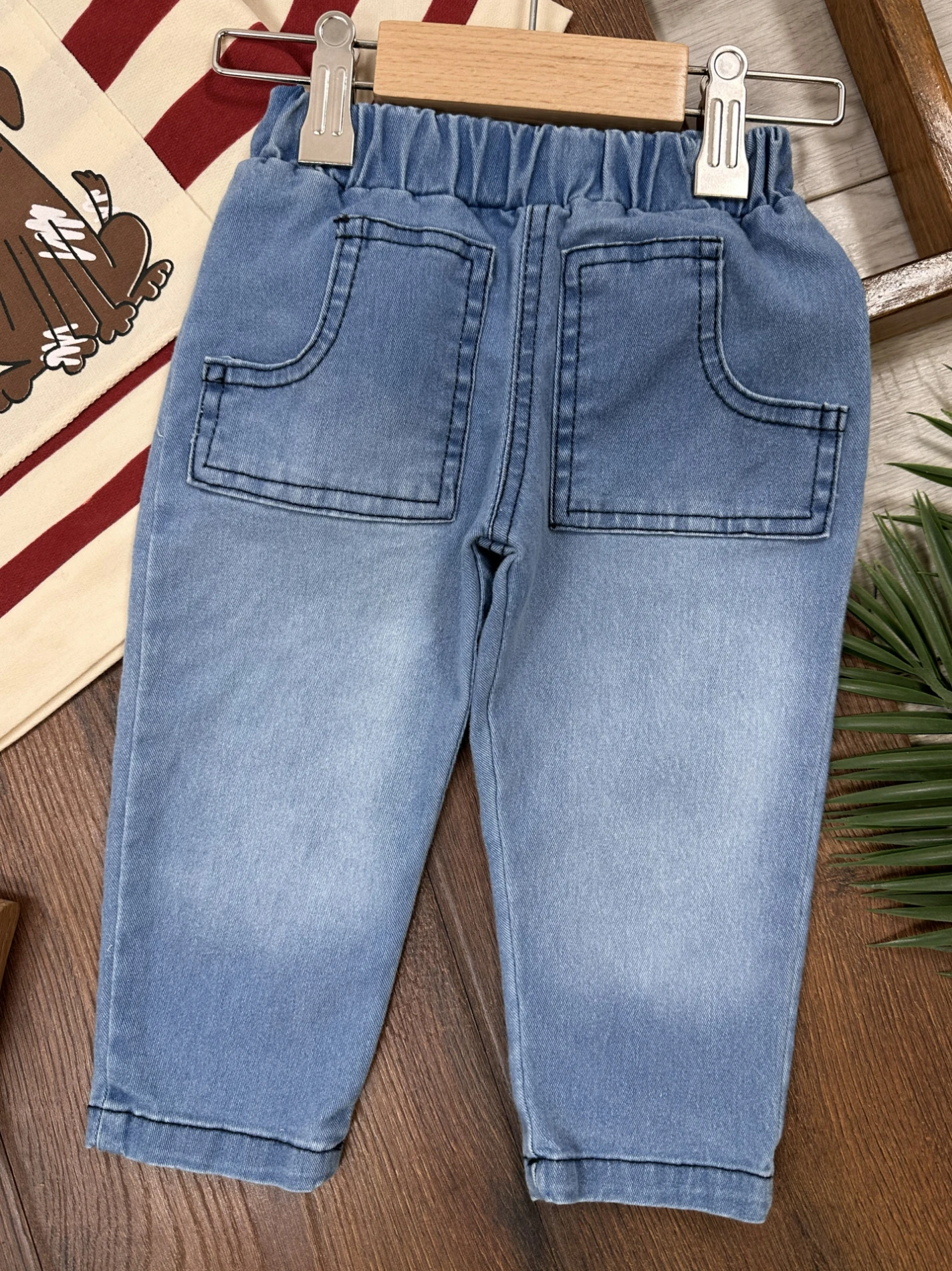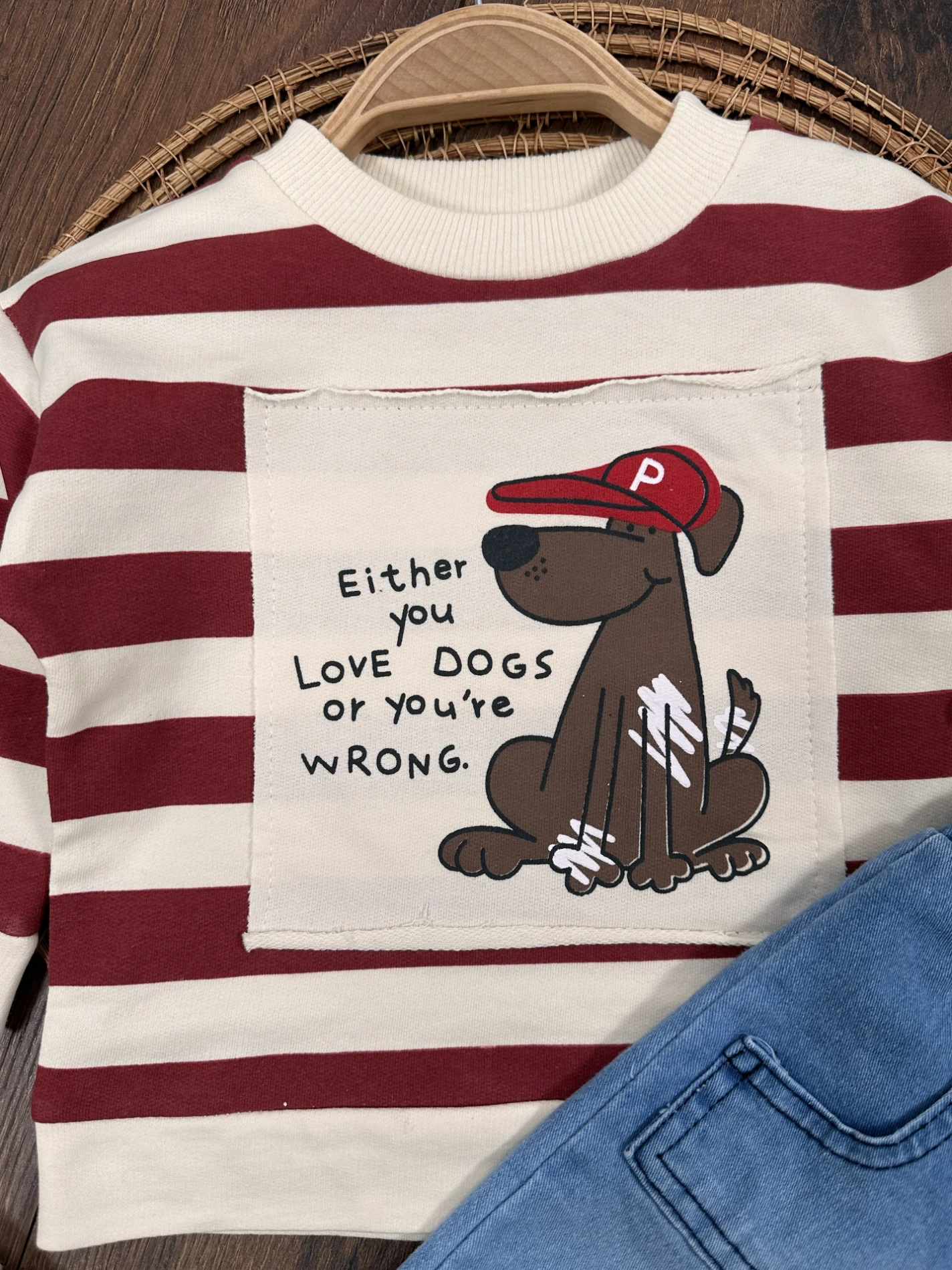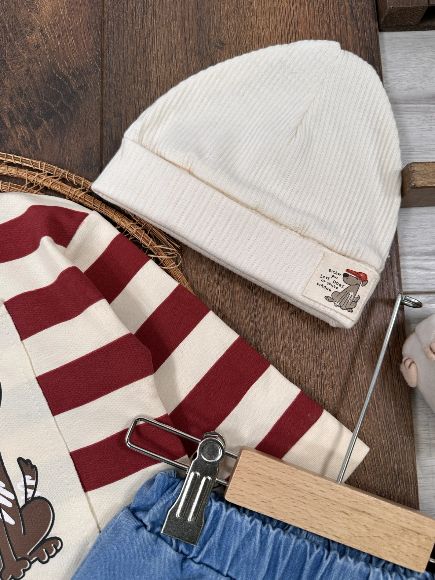 Şeritli Bereli Likralı Sevimli Köpek Baskılı Kot Erkek Bebek Takım