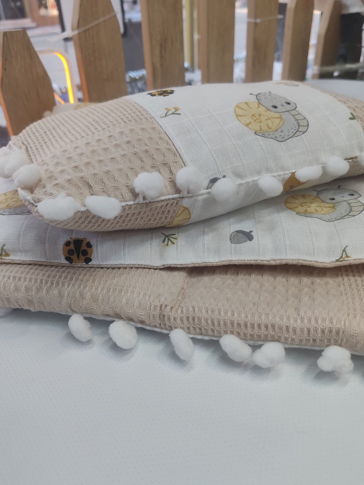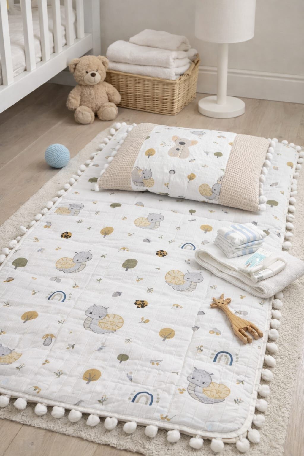 Ürün içeriği: 45x75 cm alt açma matı Bebeğinizin üzerinde yatabileceği ya da alt değiştirme minderi olarak kullanabileceğiniz bir tarafı%100 pamuk muslin kumaştan, bir tarafı %100 pamuklu waffle pikeden yapılmakta, içerisinde 230 gr/m3 oeko-Tex sertifikalı elyaf bulunmaktadır.