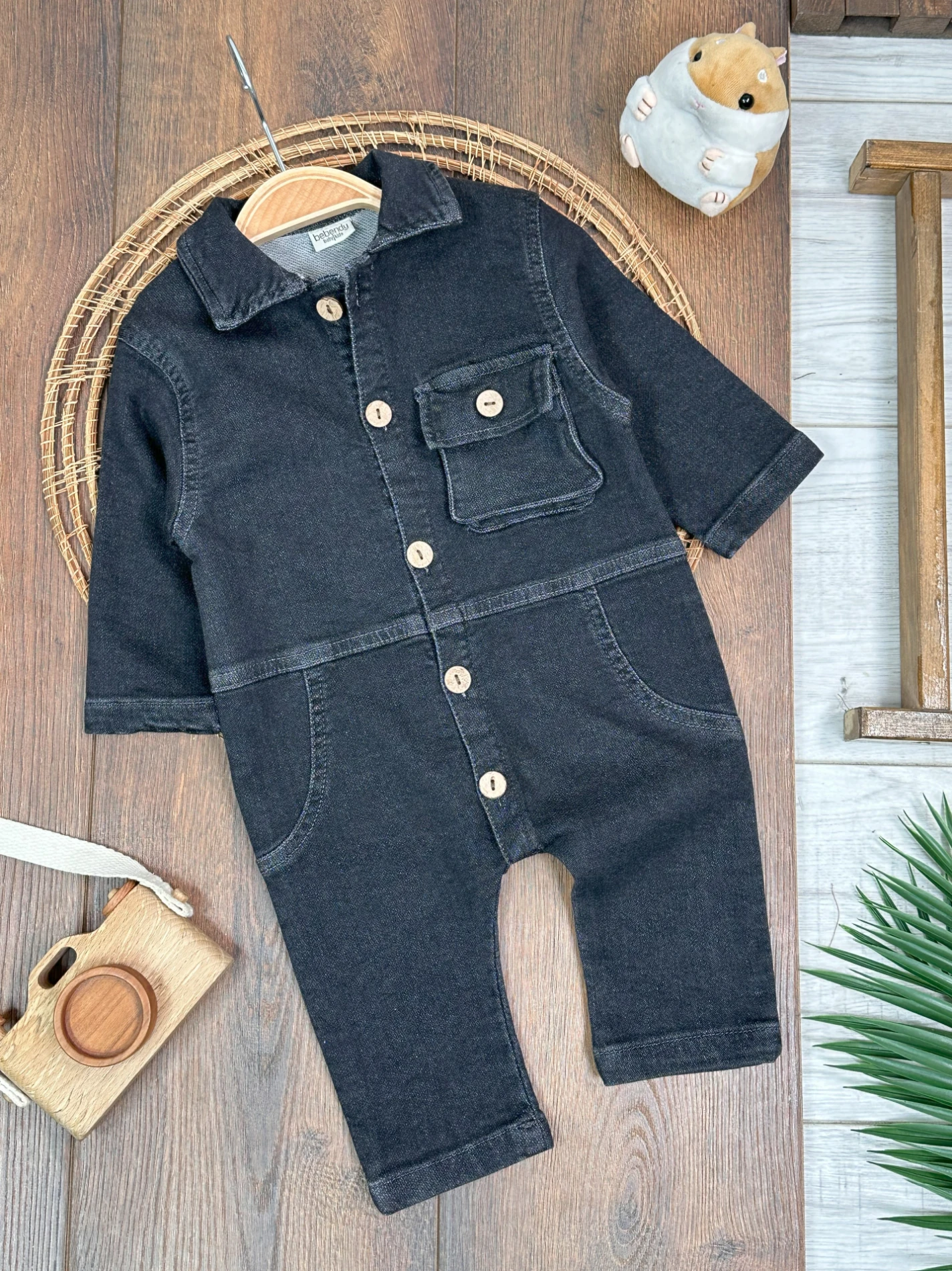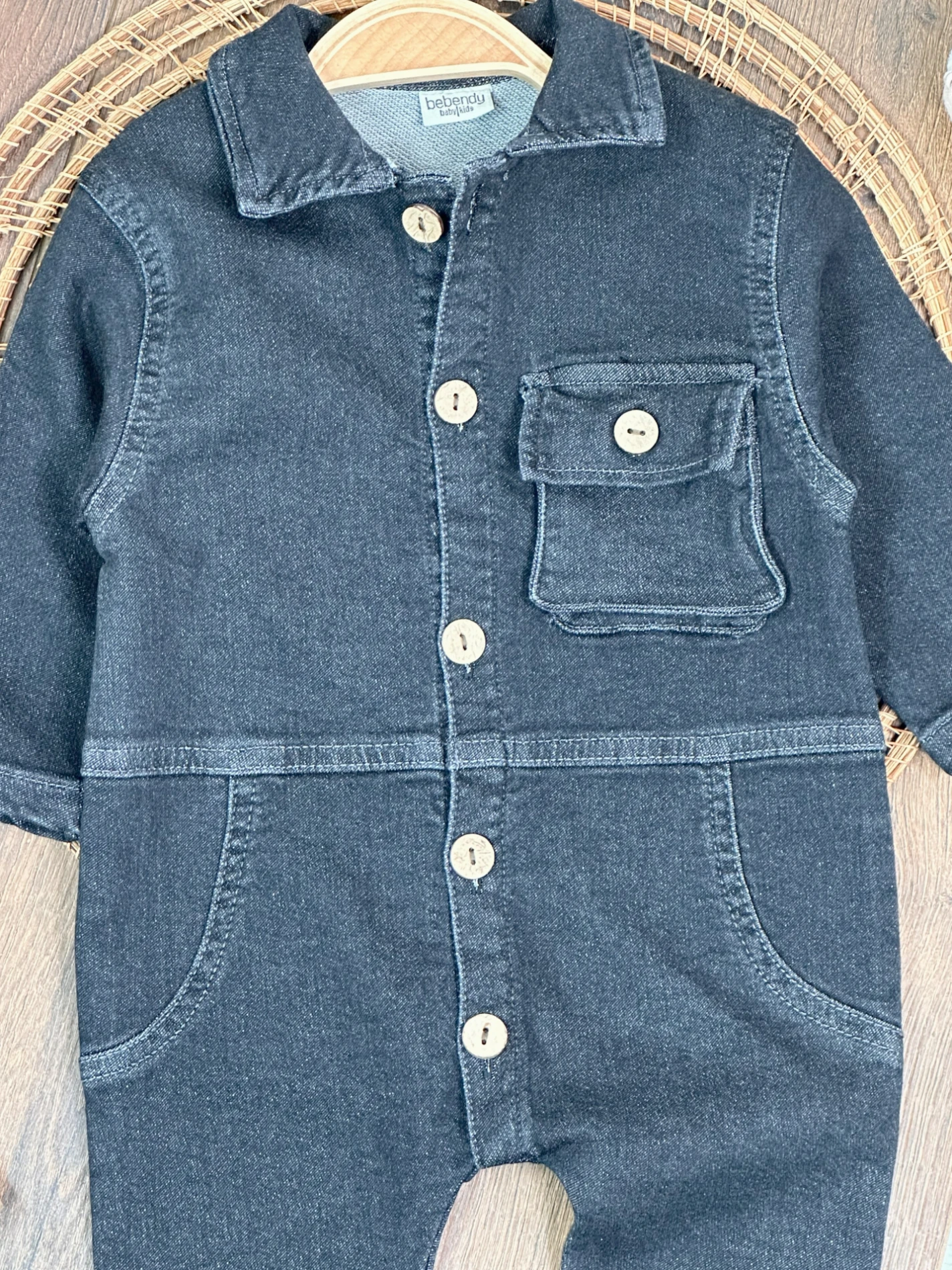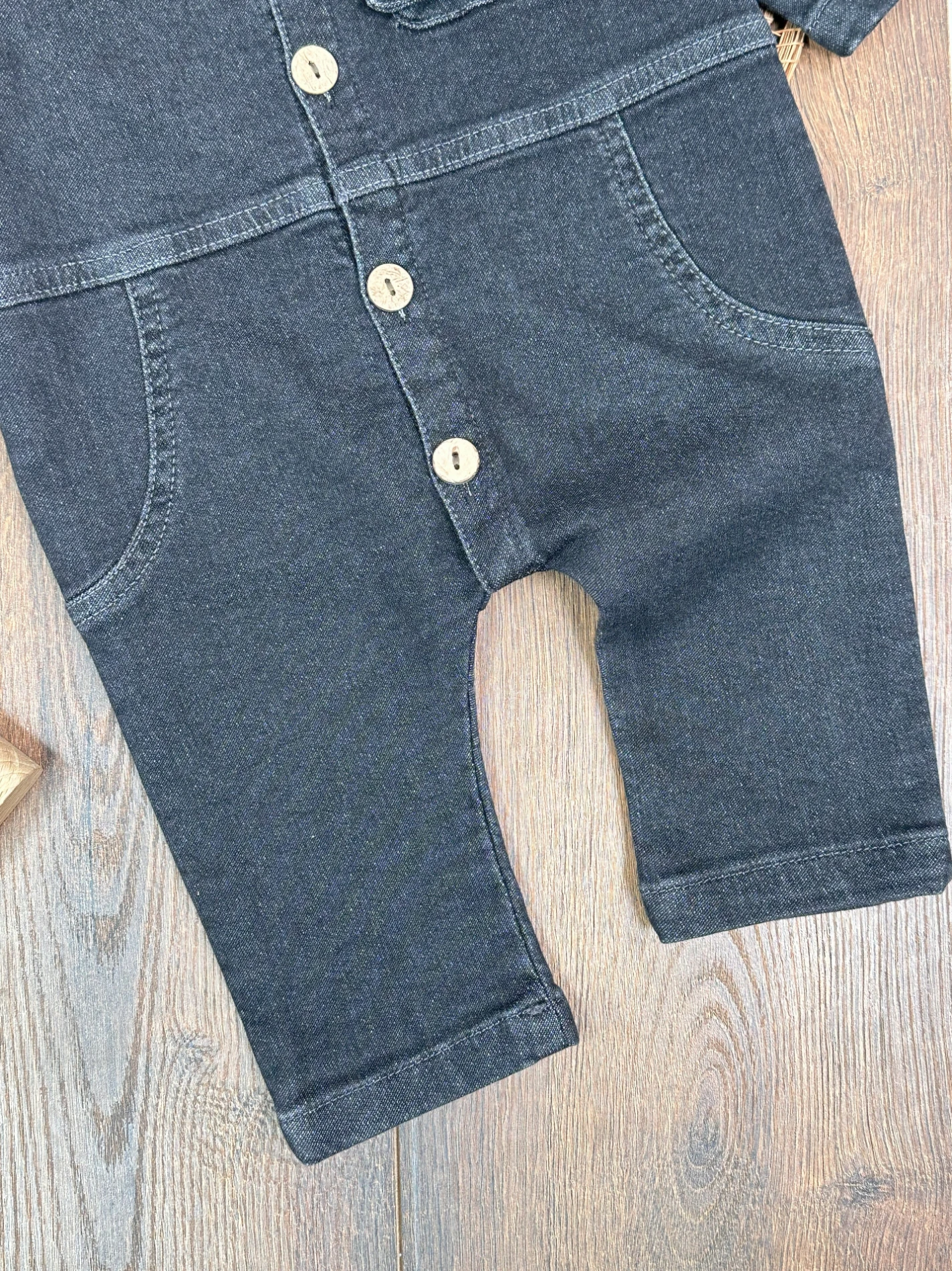 Yumuşak Doku Premium Kalite Önden Düğmeli Esnek Geniş Kalıp Unisex Örme Kot Bebek Tulum