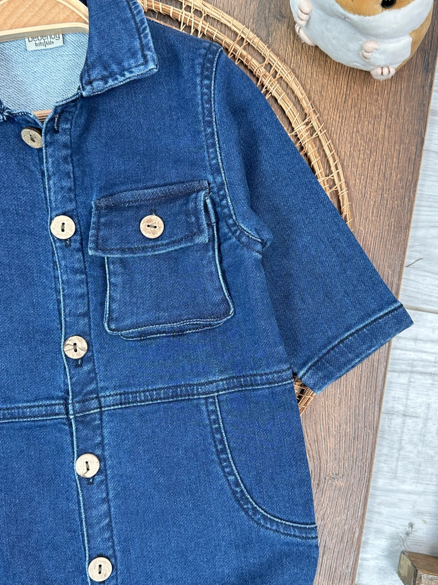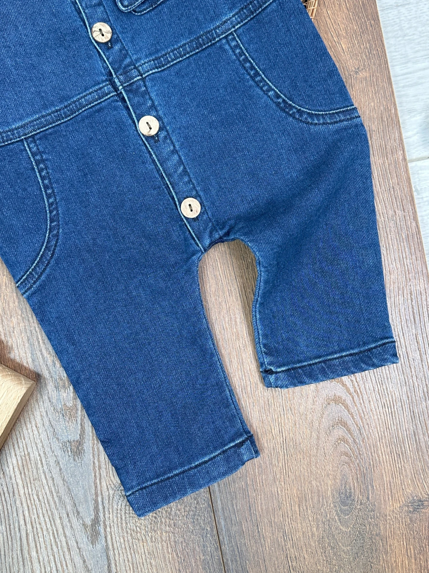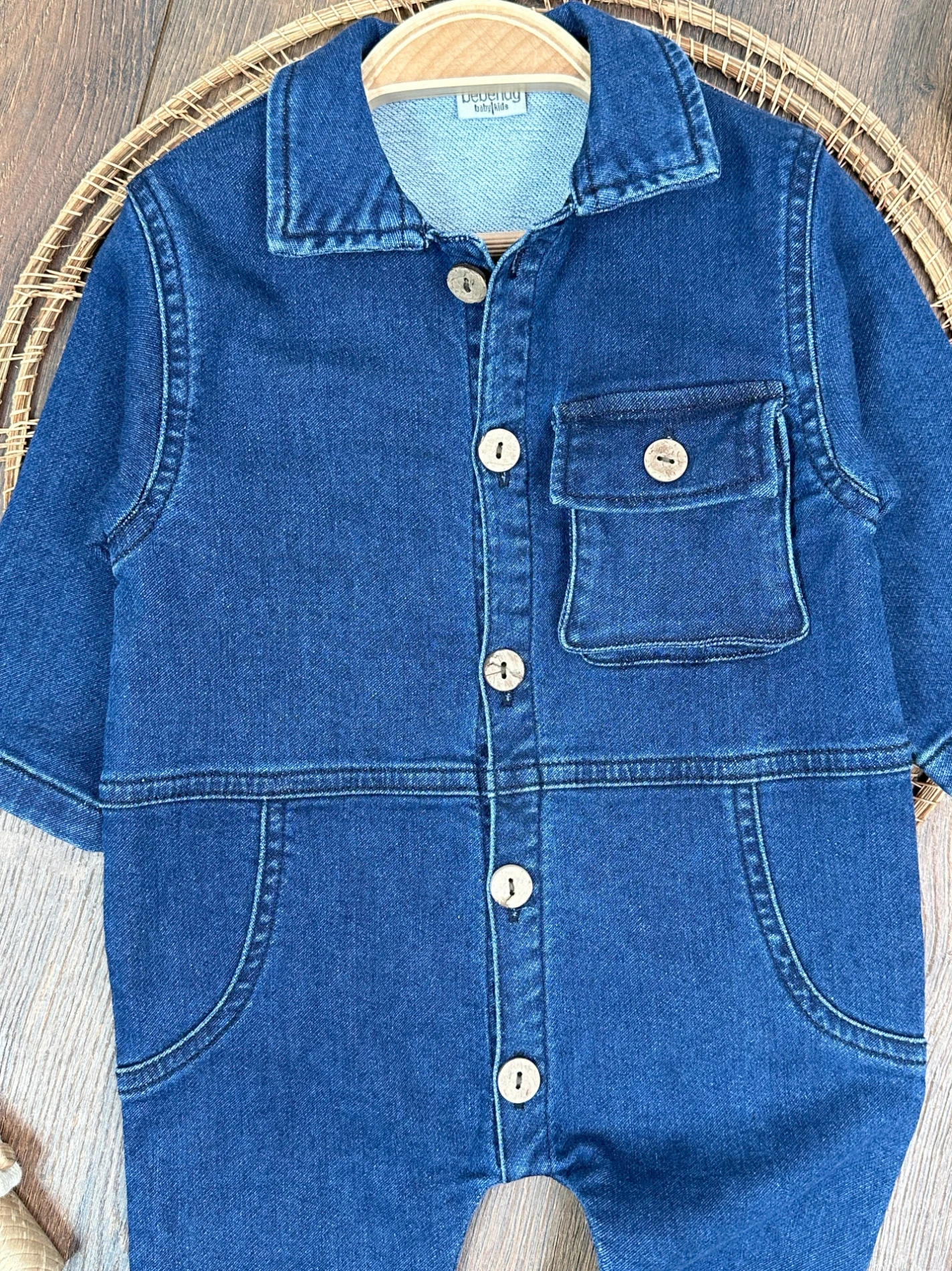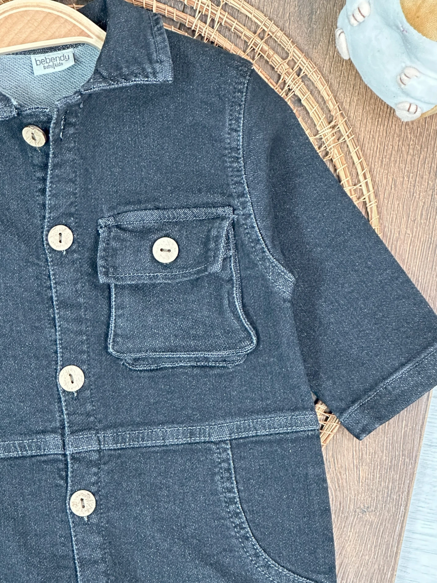 Yumuşak Doku Premium Kalite Önden Düğmeli Esnek Geniş Kalıp Unisex Örme Kot Bebek Tulum
